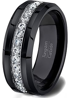 Mens Wedding Band High End Tungsten Ring Stacked Cz Diamonds 8mm