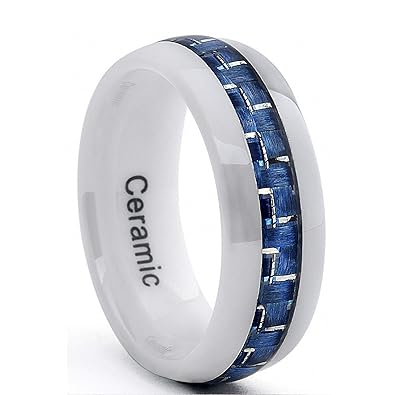 Metal Masters Co White Ceramic Men S Wedding Band With Blue Carbon