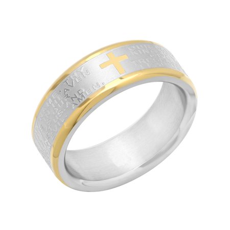 Men S Stainless Steel Two Tone 7mm Lord S Prayer Wedding Band Mens