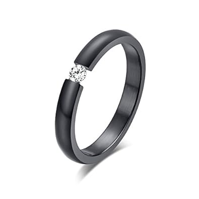 Black Stainless Steel Men S Wedding Ring Promise Band W Single Cz