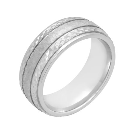 Men S 8mm Sterling Silver Diamond Cut Edge Ring Mens Wedding Band