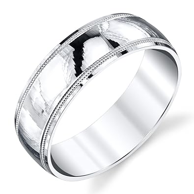 Sterling Silver Mens Wedding Bands Hammered Ring 7mm Textured