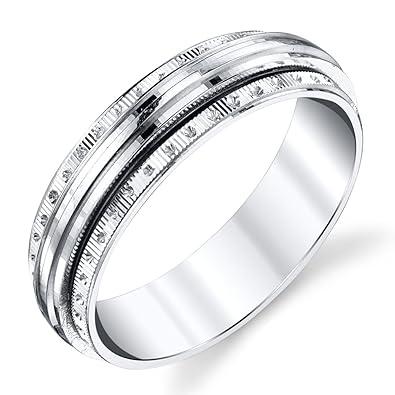 White Gold Vertical Carved Design Mens Wedding Band Fascinating