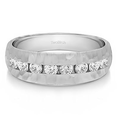Men S 925 Sterling Silver Diamond Wedding Band Amazon Com